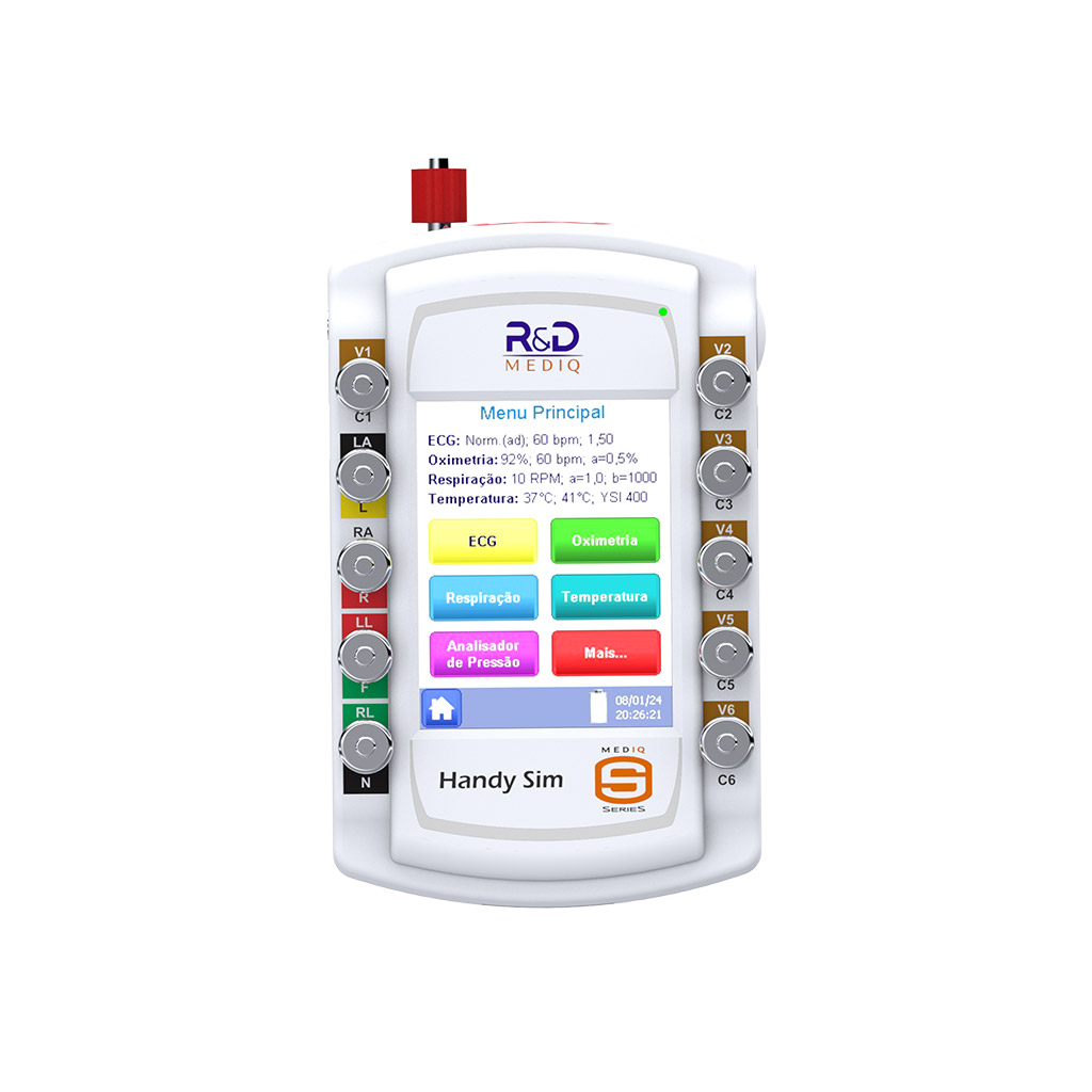 - HS-30ESL: Simulador de ECG (com arritmias) e oximetria com recurso para geração de laudo e de sequencia de ensaios.