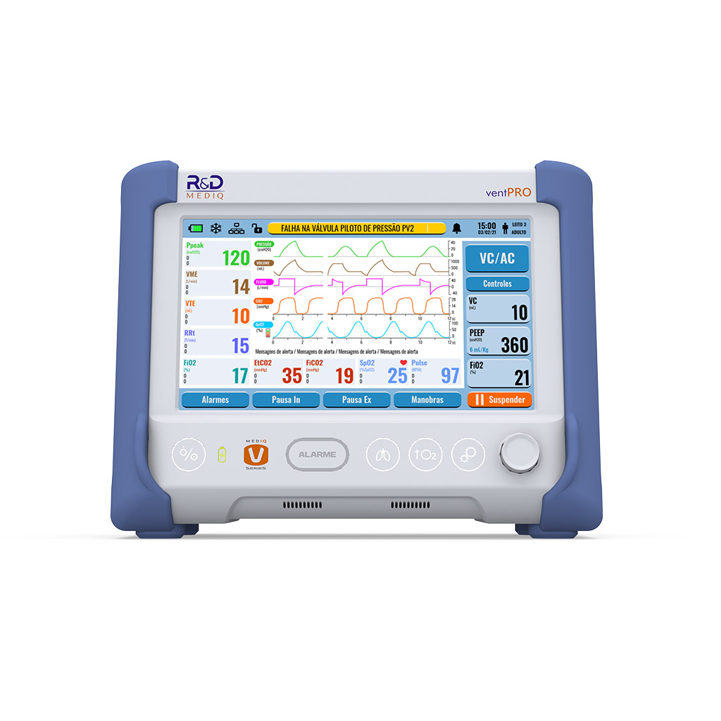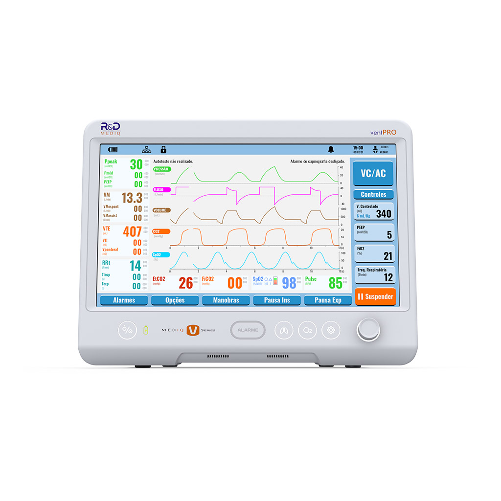 Equipados com um conjunto abrangente e robusto de alarmes e um sistema de navegação intuitivo através de touch screen, encoder e botões de atalho, esses dispositivos colocam o controle ao alcance das mãos dos profissionais de saúde, proporcionando tranquilidade e eficácia durante todo o processo de ventilação.